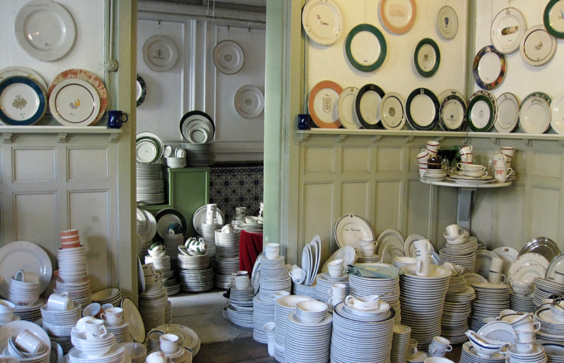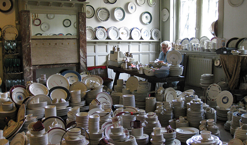 This porcelain was made for hotels, restaurants, businesses, and elegant clubs and does not easily break. Moreover, it is decorated with beautiful patterns from the 1930s, often with gold edges. She brought back pallets full of it. This tableware is no longer produced as the factories closed down. Purchases are now mainly made through Dutch dealers who know exactly which tableware suits the store.
