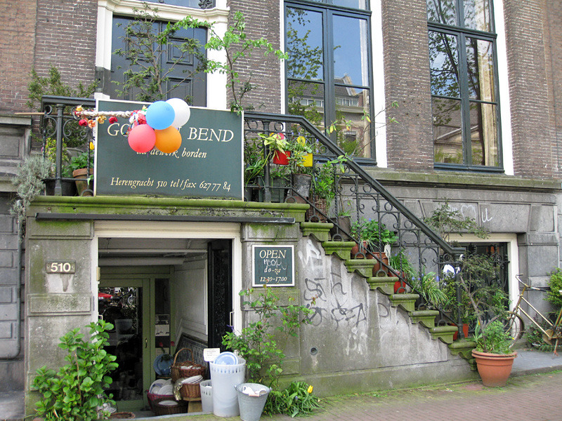 Golden Bend is a small shop on the Herengracht that is easily overlooked. When you go down the stairs, you enter a room filled with porcelain, stacked almost to the ceiling. You will find here tableware from the nineteenth century to pieces from the 1960s, featuring brands like Wedgwood, Rosenthal, and Hutschenreuther. The shop is tiny and you walk down a narrow aisle past stacked plates, saucers, cups and more.