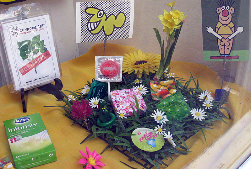 The Condomerie was founded in 1987 to promote safe sex during the AIDS crisis. Besides selling condoms, the shop also functions as an information centre for safe sex and offers advice on everything related to sex: from artificial lubricants to personal hygiene.